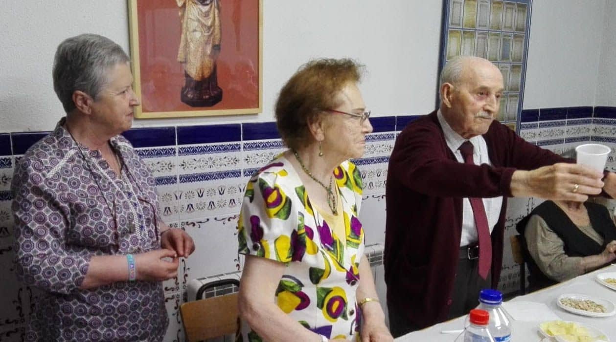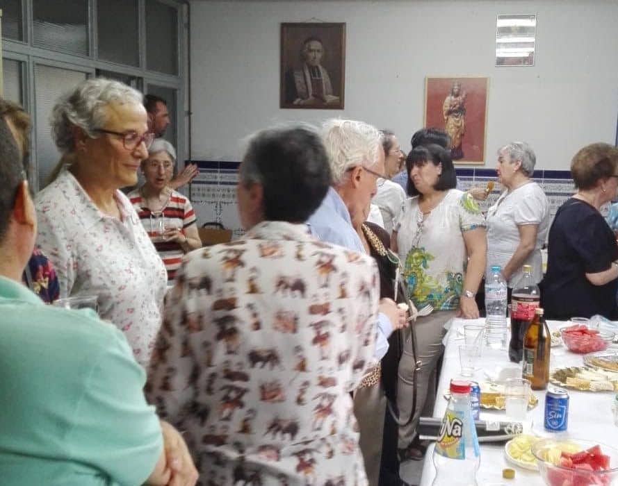 A continuación, les invitamos a compartir una sencilla merienda en el salón parroquial donde disfrutamos de un ambiente de alegría y fraternidad entre los brindis de las personas más antiguas y la acogida de los más nuevos.